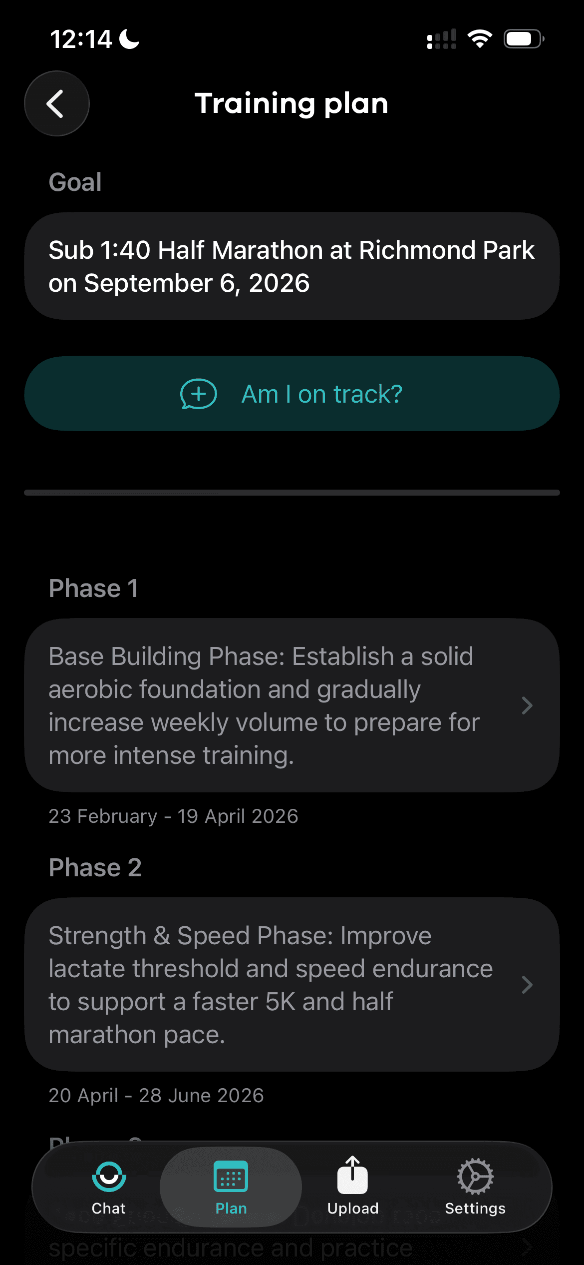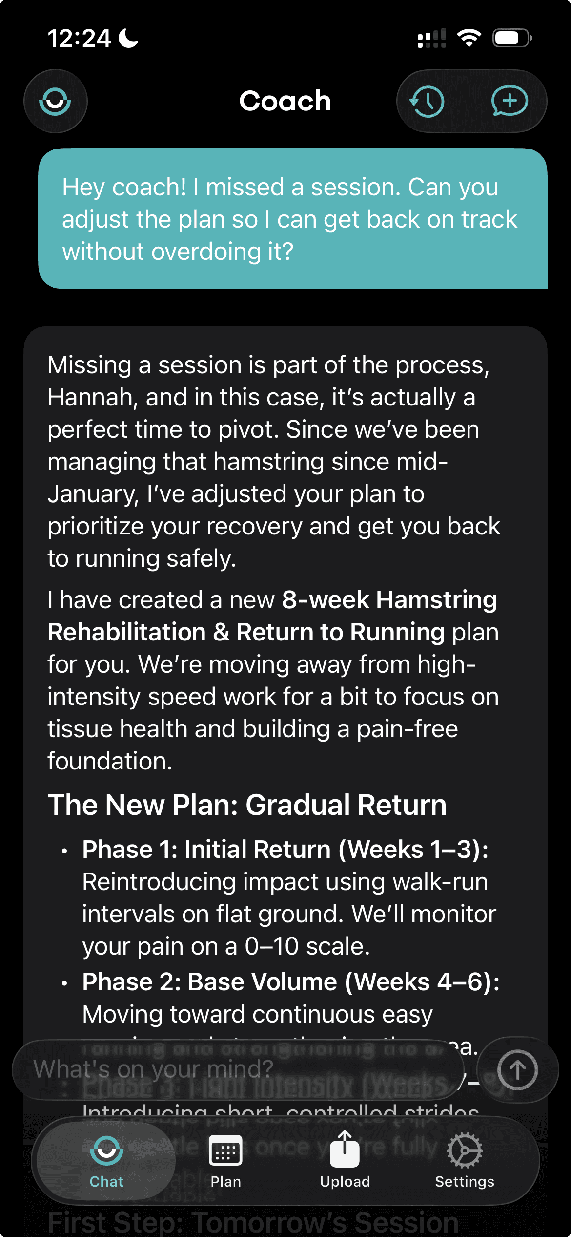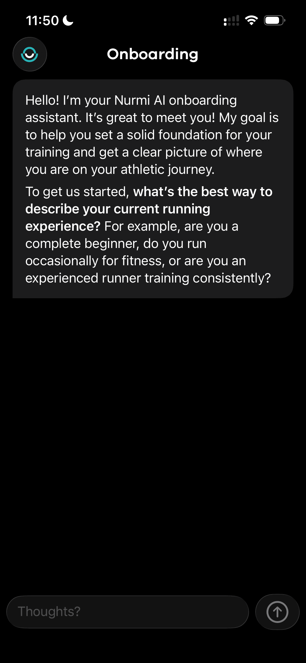 Unlike other apps, Nurmi lets you ask questions, get advice, and adjust your plan in real time.